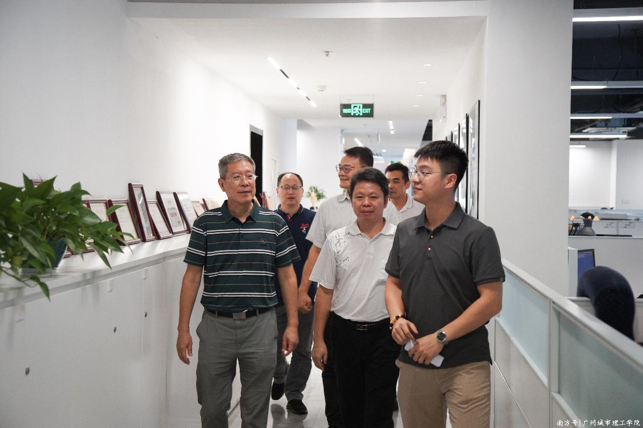 黄创忠向建筑学院院长陆琦介绍公司情况(刘建斌 提供)