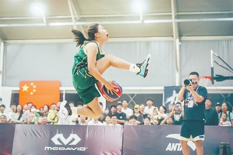 为了打磨技术,她付出了远超同龄人的努力。“刚开始就反复练胯下、背后运球这些基础动作,丢球了、失误了就重新来,直到形成肌肉记忆。” 罗可馨坦言,后期的高难度动作都是从教学视频里学来的,“刷到喜欢的动作,就立刻拿球去球场模仿,一遍不行就十遍,十遍不行就一百遍,直到完全掌握”。小学、初中时,她都是学校篮球队队员,面对身体素质更具优势的队友,她毫不怯场,凭借灵活的走位和精准的控运弥补差距,这段经历也让她的技术更加扎实全面。