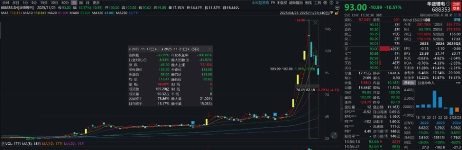 大涨后持续回调,上周最牛股华盛锂电本周跌超33%